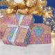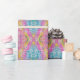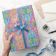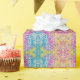 Moderne Kunst mit rosa, blauen und gelben Hintergrund und Spritzer mit weißem Acrylfarbumhüllungsdruck.