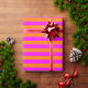 Ein Streifen-Muster mit heiß rosa auf einem orangen Hintergrund.