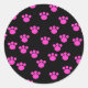Helles, rosa und schwarz paw Druckmuster. Runder Aufkleber