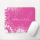 Vibrierendes Rosa mit weißen illustrierten Blumen werden auf diesem modernen mousepad gekennzeichnet. Kundengerecht mit Ihrem Namen oder löschen Sie den Textbereich.