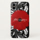 Fügen Sie eine reizende weibliche Touch mit dieser niedlichen hellen roten Gerberagänseblümchen-Blume, gegen einen Schwarzweiss-Damaststrudelhintergrund hinzu. Niedlicher und des Chic moderner Zusatz mit einem vibrierenden Blumenmotiv des hochroten Rotes und wirbelnden weißen Reben und Rollen auf einem Feld des Schwarzen. Nett für Frauen, girly Mädchen oder eine liebevolle Freundin der Natur.