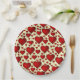 Ein Muster hellroter romantischer Herzen, einige große kleine auf einem gelben Hintergrund. Feine schwarze Linien zwischen den Herzen geben ihm eine interessante Textur.
