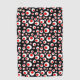 Dieses Golfhandtuch ist schwarz mit einem abstrakten, hellen, runden Muster roter Kreise in größeren weißen Kreisen.
