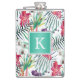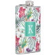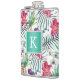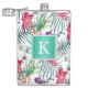 Die tropische Gestaltung ist farbenfroh, mit Palmblättern und tropischem Blattwerk mit Orchideen, Lilien und anderen exotischen Blüten in kräftigen Rot, Rosa, lila, Weiß und Orange. Ein quadratischer Rahmen umgibt das Monogramm, das Sie mit Ihrem gewünschten Initial personalisieren können.
