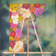 Ein farbenfroher Blumenstrauß mit Blume und Grünpflanzen. Anpassbare Texte und Schriftart. Kontaktieren Sie Designer mit Designanfragen.