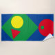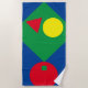 Primärfarben in fett geometrischen Formen bedecken dieses moderne Strandtuch. Ideal, um eine kühne Präsenz am Strand zu machen.