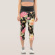 Helles und fröhliches Blume-Muster auf schwarz Capri Leggings