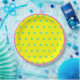 Hellgelber Hintergrund. Türkisblaue Polka-Punkte mit geometrischer Darstellung in Rosa. Fun Mix und Match Muster. Original Artwork Design © TamiraZDesign.