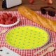 Hellgelb rosa blaue Polka-Punkte Pappteller