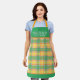Die Karierte Schürze in den Farben Gelb, Grün und Orange verleiht Ihrer Küche eine lebendige Touch und vereint Funktionalität mit Stil. Das fröhliche, karierte Muster in hellgelben, grünen und orangefarbenen Tönen verleiht Ihrem kulinarischen Ambiente eine ganz besondere Note.