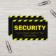Diese Visitenkarte enthält den Titel "SICHERHEIT", der in fett gelber Schriftart auf schwarzem Hintergrund in der Mitte gedruckt ist. Sie können Ihren Firmennamen oder zusätzlichen Text sowie einen Mitarbeiternamen angeben. Eine schwarz-gelbe Streifen- oder Warnzeichenlinie umrahmt den oberen und unteren Teil der Visitenkarte, wodurch sie gut sichtbar und leicht zu erkennen ist. Auf der Rückseite der Karte befinden sich zusätzliche Firmeninformationen, die auf einem schwarzen Hintergrund gedruckt wurden.