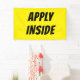 Führe Arbeitsuchende direkt an deine Tür mit diesem Banner "ANWENDEN INSIDE" in fett gelb und schwarz. Es ist für maximale Sichtbarkeit konzipiert und passt perfekt zu den Bannern "Now Hiring" oder "Help Gewollt", wodurch deutlich wird, wohin die Bewerber gehen sollen. Hochsichtfarben: Gelber Hintergrund mit fett schwarzem Text für Straßenübersicht und Schaufensterklarheit. Klare Aufforderung zum Handeln: Führt die Antragsteller genau an, wo sie sich bewerben sollen. Dauerhafte Konstruktion: wetterbeständiges Vinyl mit verstärkten Keilkammern für einfaches Aufhängen im Innen- oder Außenbereich. Mehrere Größen: Erhältlich in kleinen fensterfreundlichen Größen und größeren Outdoor-Formaten. Egal, ob Sie ein Restaurant, ein Einzelhandelsgeschäft oder ein Dienstleistungsunternehmen sind, mit diesem Banner wird sichergestellt, dass Ihre Einstellungsbotschaft nicht nur Aufmerksamkeit erregt, sondern auch die Kandidaten zum nächsten Schritt anführt.