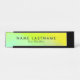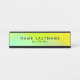 Passen Sie dieses moderne, farbenfrohe, hellgrüne und gelbe Schreibtisch-Namenschild mit schwarzen Schriftart an. Diese Platte hat schwarze Metall-Oberfläche, können Sie diese in zwei andere Optionen, um Rose Gold oder Silber Metall Finish.
