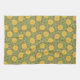 Ein Muster aus hellgelben Sonnenblumen auf braunem Hintergrund.