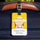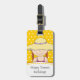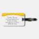Helle gelbe Gepäckmarke großartig hell gefärbte ID-Markierung, um Ihnen zu helfen, Ihren Fall zu finden. Personalisieren Sie mit Ihrem Vornamen auf der Vorderseite und der vollständigen Adresse auf der Rückseite. Hübsches Design mit einem schlichten, gelb/weiß gestrichelten Polka-Dotmuster aus der Blume und einem Mädchen mit einem großen Sonnenhut. Kunst und Design von Sarah Trett. www.sarahtrett.com