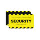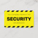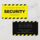 Diese Visitenkarte enthält den Titel "SICHERHEIT", der in fett schwarzem Schriftart auf hellgelbem Hintergrund in der Mitte gedruckt wurde. Sie können Ihren Firmennamen oder zusätzlichen Text sowie einen Mitarbeiternamen angeben. Eine schwarz-gelbe Streifen- oder Warnzeichenlinie umrahmt den oberen und unteren Teil der Visitenkarte, wodurch sie gut sichtbar und leicht zu erkennen ist. Auf der Rückseite der Karte befinden sich zusätzliche Firmeninformationen, die auf einem schwarzen Hintergrund gedruckt wurden.