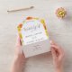 Überraschen Sie Ihre Lieben mit dieser eleganten Einladung, mit leuchtend gelb & orange Blumen, eleganter Kalligraphie und Ihrem eigenen Text und QR Code. Fügen Sie einfach Ihre eigenen Daten hinzu, indem Sie auf die Option "Personalisieren" klicken.