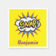 Diese Serviette ist ein lustiges und angenehmes Thema und weist einen hellgelben Hintergrund mit dem Wort "Snap!" auf, das auf einer weißen Wolke, die einen roten und blauen Schlag hinter sich hat, in Gelb geschrieben ist. Im unteren Teil ist Ihr Name in schönem lila Schriftart dargestellt. Bestelle noch heute! Clipart: AnneIllustration https://www.etsy.com/shop/AnneIllustration