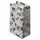 Dieser in schwarzer Tinte gezeichnet Geschenksack weist ein wunderschönes Skulpturenmuster, Rose und Spinnennetze in Creme- und Blütentönen auf, die alle auf einem eleganten, hellgrauen Hintergrund zu sehen sind.