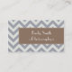 Diese Geschäftskarten haben einen trendy, modernen und beruflichen Blick und ein Gefühl. Monotone hellgraue Zickzack Streifen haben ein braunes Rechteck in der Mitte mit viel des Raumes für Ihren Textbedarf. Wenn Sie Hilfe beim Besonders anfertigen benötigen oder ein Ersuchen um verschiedene Farben haben, glauben Sie bitte, dass frei, mir und mit mir in Verbindung zu treten glücklich ist, mit Ihnen zu arbeiten.
