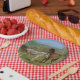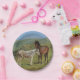 Hellgraues Pferd auf einem Feld (Pferdezucht) Pappteller