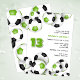 hellgrüne schwarze Fußballbälle Kindergeburtstag Einladung