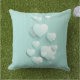 Hellgrüner Hintergrund mit 3D-weißen Herzen Kissen