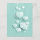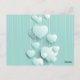 Hellgrüner Hintergrund mit 3D-weißen Herzen Postkarte