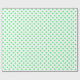 Ein Umhüllungspapier, das mit einem hellgrünen Polka-Punktmuster gebaut wurde und einen mittleren Abstand zwischen den Punkten auf weißem Hintergrund aufweist. Passen Sie den weißen Hintergrund unter anderen Optionen an.