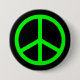 Hellgrünes Friedenszeichen auf schwarzem Pinback Button