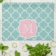 Ein Weiß umrissenes quatrefoil Muster ist auf einem Licht, fast Seeschaum-Grünhintergrund. Die Mitte hat ein kundengerechtes Licht, rosa Monogramrahmen des Pulvers, der die grüne Farbe hübsch beglückwünscht.