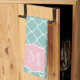 Hellgrünes Quatrefoil rosa Monogramm Handtuch
