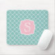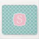 Hellgrünes Quatrefoil rosa Monogramm Mousepad