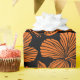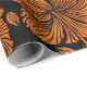 Helles hawaiianisches nahtloses Muster mit tropischen Hibiskus-Blume auf schwarzem Hintergrund in Orangetönen.