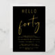 Erleben Sie Ihr 40. Party mit dieser schicken Schwarz-Einladung, die "Hallo 40" in einer Mischung aus einem einfachen Schriftart und einem stilvollen Drehbuch, Ihren Namen in eleganter Serif-Typografie und die Party-Details in moderner Schrift vereint, alles in Ihrer Wahl von echter Goldfolie, Silberfolie oder Rose.
