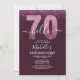 Hello 70! Invite your friends and family to celebrate the 70th birthday with this modern design. The design features a black background, the numbers thirty in faux pink glitter, with an elegant pink glitter background, elegant calligraphy script, a modern birthday template that's easy to personalize, and the option to add a photo to the reverse. Don't think about it and get yours now.