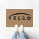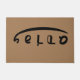 ein Ambigramm des englischen Wortes hallo und das spanische Wort adios für einen Türmchen, der beide Seiten ausliest, ein- und ausliest. ein Zwei-Wege-Türmchen.