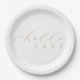Hello Baby Beige Script Minimalistisch Baby Dusche Pappteller