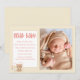 Hallo Baby Birth Announcement Card für Baby Girl. Personalisieren Sie mit einem Foto Ihrer Freude-Bundle, fügen Sie alle Ihre eigenen Informationen und ändern Sie Farben und Schriftart nach Ihren Vorlieben.