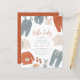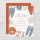 Eine niedliche, moderne Babydusche mit "Hello Baby" in Terracotta-Schriftzeichen und Ihren Duschdetails in einfacher Typografie. Das Design ist in einem neutralen pastellblauen, cremefarbenen und rostorangefarbenen Stil gestaltet. Die Kleidung umfasst Overalls, eine Rampe, Hose, eine Mütze, Babyschuhe, ein Shirt und einen Pullover. Es gibt auch einen kleinen Holzdinosaurier und ein Fuchsspielzeug. Eingeladen zu einem einfachen skandinavischen, weißen Dreieck-Muster vor einem orangefarbenen Hintergrund. Dieser Kleiderschrank hat alles, also ist diese Einladung perfekt für Frühjahr, Sommer, Herbst und Winter Babys! "Im Rahmen der Budgetauswahl auf Zazzle ist dieses Blatt keine Standard-Einladungsgröße oder Papierqualität. Wenn Sie dieses Design auf einer Einladungskarte gewollt haben, können Sie es in unserem Shop finden oder mit der Zazzle Make Machine auf das Produkt Ihrer Wahl übertragen. Wenn Sie Fragen haben, kontaktieren Sie mich - ich helfe Ihnen gerne. Besuchen Sie unseren Shop für weitere Designs!