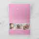 Einfach weißes Typografie-Overlay von Hello und Ihr schönes Mädchen-Foto auf dieser einfachen Rose rosa Foto Geburtsankündigung. Passen Sie das Innere mit drei quadratischen Fotos Ihres süßen Säuglings für eine liebliche minimalistische Collage-Karte an. Auf der Vorderseite blutete volles Foto.