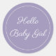 Ein niedlicher "Hallo Baby Girl" Geschenkaufkleber für ein neues Babygeschenk. Text im Skript-Schriftart. Weiße Schrift auf Pastellviolett.
