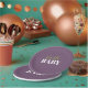 Dies ist eine geschlechtsneutrale Platte für ein Baby-Duschbad-Party. Es enthält den Text "Hallo BABY" in hellgrün auf einem dunkelpflaumenfarbenen Hintergrund.