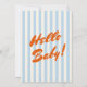 Hallo, Baby! Feiern Sie die Eltern oder die zukünftige Mutter mit dieser kühnen Retro-Babydusche mit einer fett-farbigen Farbpalette aus Orange und Blau, Retro-inspirierter Typografie, geometrischer Form auf der Vorderseite und gestreiftem Rücken auf der Rückseite. Alle Farben dieses Einladungs-Designs können nach Belieben geändert werden!