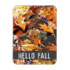 Foto von herbstfarbenen gefallenen Blätter in einer Pfütze mit "Hello Fall" benutzerdefinierbarer Textüberlagerung