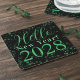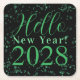 Hello New Year! New Year's Eve Green Black Sparkle Rechteckiger Pappuntersetzer