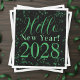 Hello New Year! New Year's Eve Green Black Sparkle Serviette