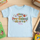 Make the first day of school unforgettable with this charming "Hello Pre-School" t-shirt! The design captures a fun retro groovy vibe with playful bubble letters and features cute illustrations of a school bus, a stack of books, a globe, and crayons. The pastel color palette and 70s-inspired stars add a vintage touch. Personalize the bottom with your child's name to create a unique keepsake for school pictures, meet-the-teacher events, or everyday classroom wear.