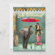 Eine lustige und funky modifizierte Kunstvignette mit Vintagem Flapper auf Stuhl, einem Elefanten mit einem Schirm und "Hello Retirement" im Neontext. Vielleicht ist es genau das, wovon sie geträumt haben..