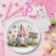 Hello Spring Garden Gnome: Cute Gnome with Braids Pappteller